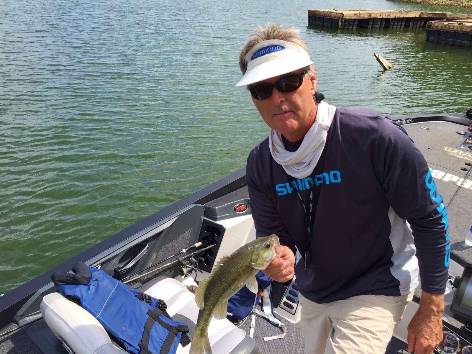 Bernie Schultz has a five-bass limit, but apparently they’re all about the size of the spotted bass in the photo here. His five weigh an estimated 5 pounds even.