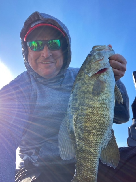 Pro Joey Sabbagha shows off a nice smallmouth from practice.