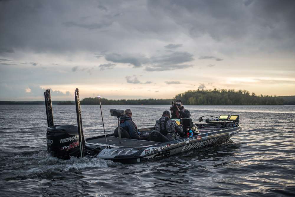Today’s early-morning thunderstorm caused a slight delay in the start this morning, but the sky was beginning to clear at takeoff. These Classic Bracket anglers have dealt with different weather conditions every day this week, especially the last two days. It was 45 degrees and there wasn’t a cloud in the sky at yesterday’s start. It was 64 degrees as the thunderstorm cleared this morning.