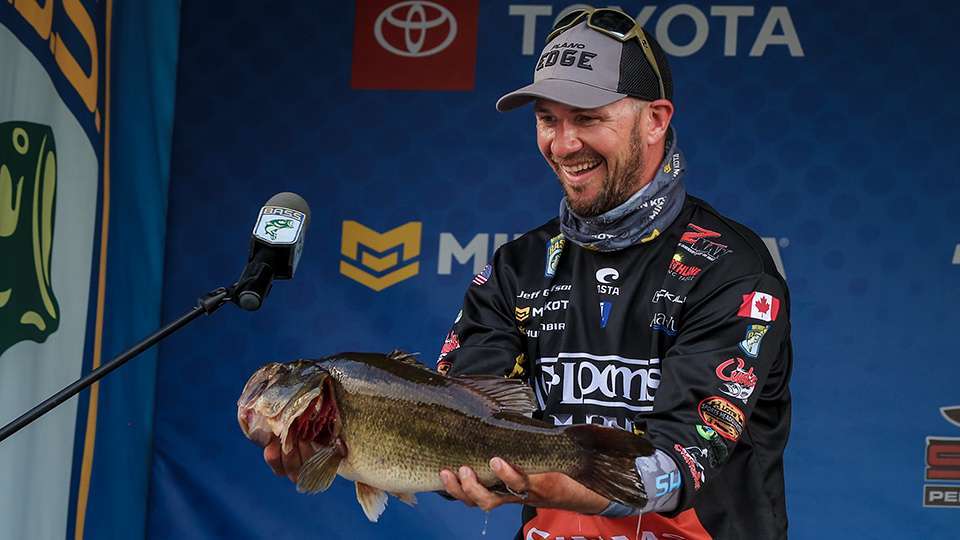 Jeff Gustafson just told us that is has already snowed at his home in Canada, but today he’s fishing in shorts…and for a hundred grand.
