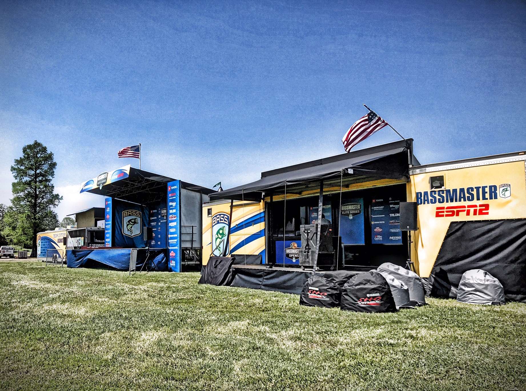 The B.A.S.S. roadies have the stage set up for the Bassmaster Elite at Winyah Bay derby starting tomorrow. This huge, gorgeous setting should be rockin’ by time the weigh-in starts around 4:45 p.m. ET.