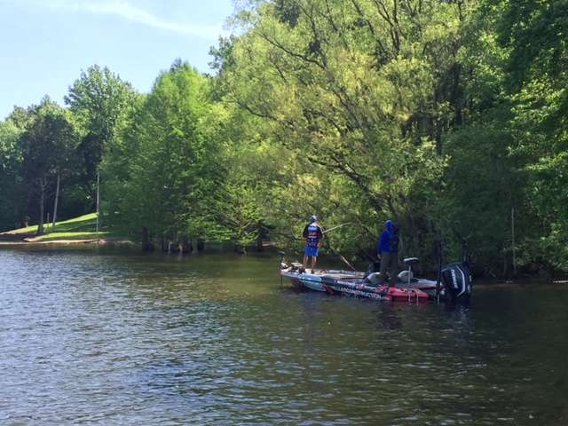 Wesley Strader just landed his sixth keeper, a 2 and 3/4 pound bass, and culled up a pound and a half. That puts him at 15 pounds in BASSTrakk and 2-12 behind Skeet Reese. We think Strader has closer to 16 pounds, but it’s likely Reese’s weight is a little short as well.