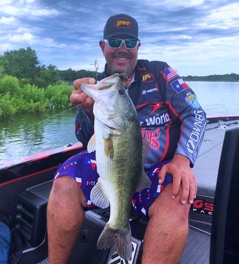 Talley has been stuck with two keepers totaling 2-8 most of the day and was steadily dropping down near the 25th-place cutoff for tomorrow’s final day. However, Talley will definitely survive to compete on Day 3 thanks to a 5-pounder he caught at 1:10. It bumped him up near where he started the day in 15th place on BassTrakk.