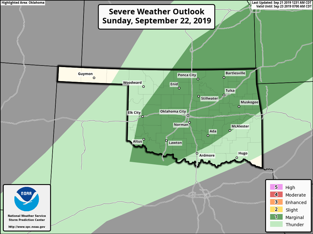 The front moves in on Sunday which will bring a much greater risk of showers and thunderstorms. There is a marginal risk of severe storms with damaging winds up to 60 MPH and hail up to 1-inch in diameter as the main threats. The stronger storms may hold off until the latter half of the fishing day. Skies will generally be mostly cloudy with temperatures starting off in the lower 70s and rising to the upper 70s for the high. Winds will be out of the south to the south-southwest at 10-15 MPH with gusts up to 20 MPH possible. Chance of rain will be around 60% and dewpoints will stay in the lower 70s.