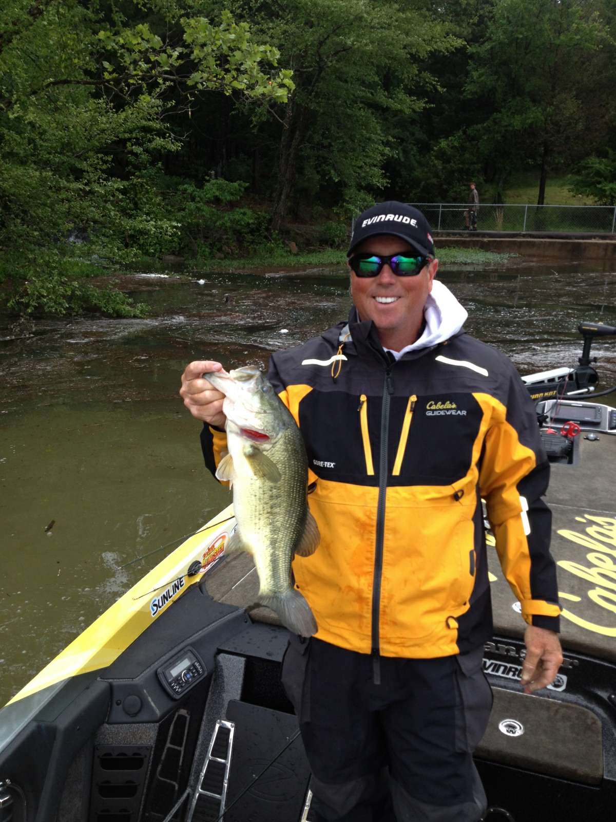 We're watching David Walker fishing shallow near a boat ramp. Zell Rowland just left this spot. Walker slid right in after he left and caught a nice-looking 4-pounder.