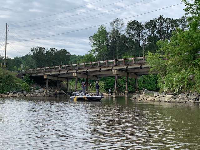 Today he’s focused on areas near bridges and has two keepers for 2 pounds. That has him sitting in sixth place in BassTrakk for the moment.