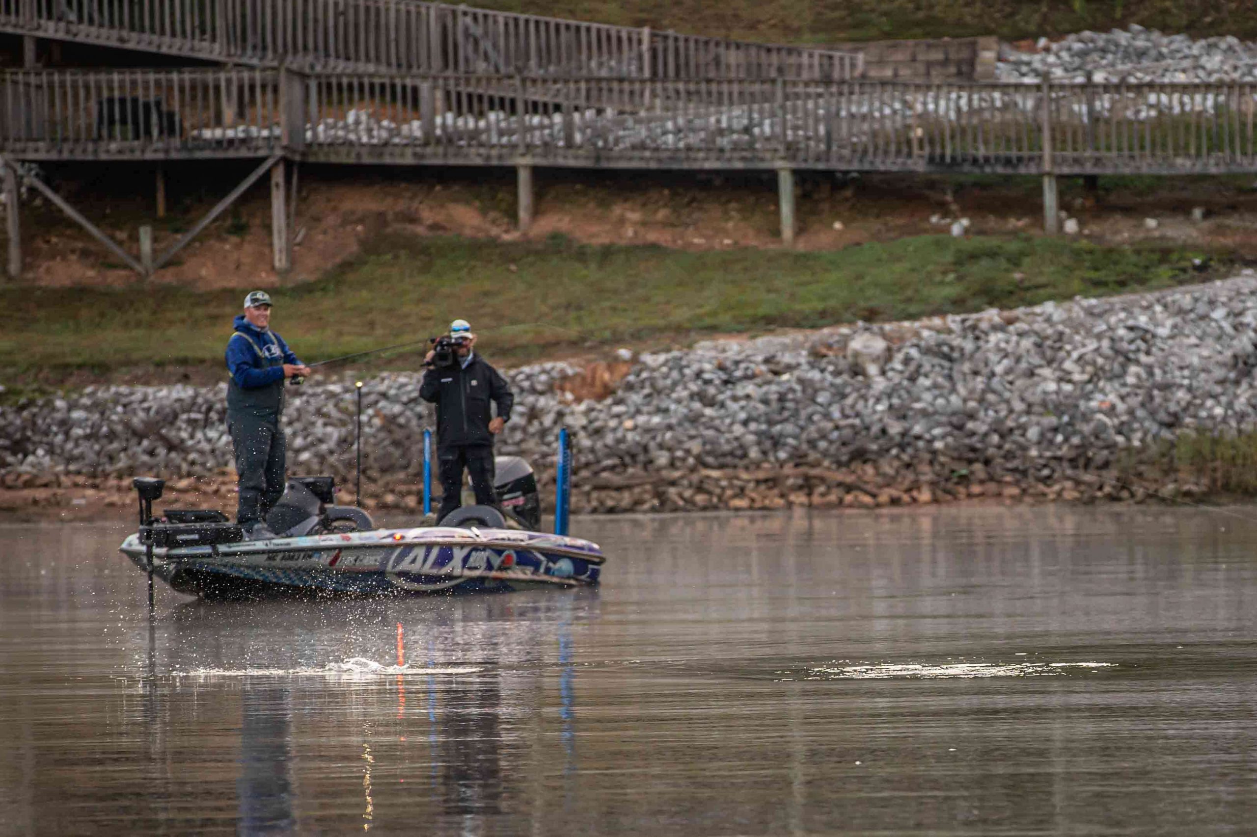 Yesterday, the same thing happened, with a late flurry of schooling action solidifying Whitaker’s place in Championship Monday. He’s only got 2 in the livewell, weighing 2 pounds, 14 ounces, but just wait. The morning is young.