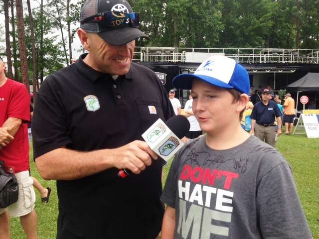 favorite Elite Series pros. In this photo a young angler asks Kevin