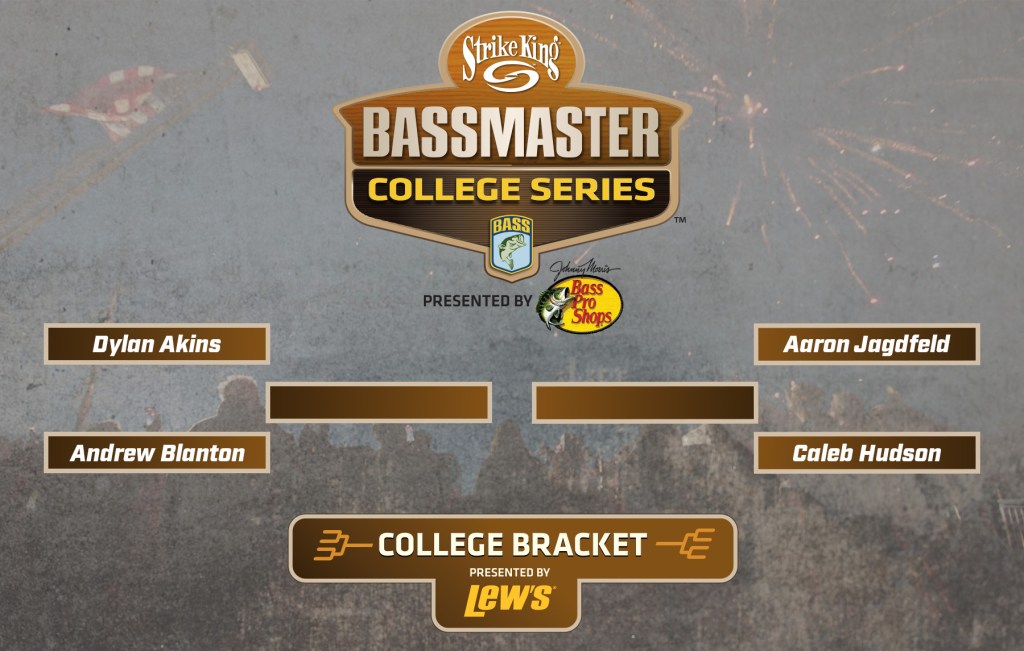 With a two-day total of 30 pounds, 4 ounces, Akins finished at the top of the leaderboard on Day 2 and earned the No. 1 seed heading into the bracket portion of the event. Adrian College angler Aaron Jagdfeld earned the No. 2 seed with 29-2 while Caleb Hudson from the University of South Carolina-Union will be the third seed with 27-1. Lander University’s Andrew Blanton claimed the fourth and final seed with 20-14.