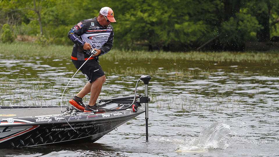What you should do, or again what I do, is make precise and highly accurate flips and pitches into high percentage spots — holes, cuts and other obvious ambush points. And, you do it with a soft, almost finesse-like entry.