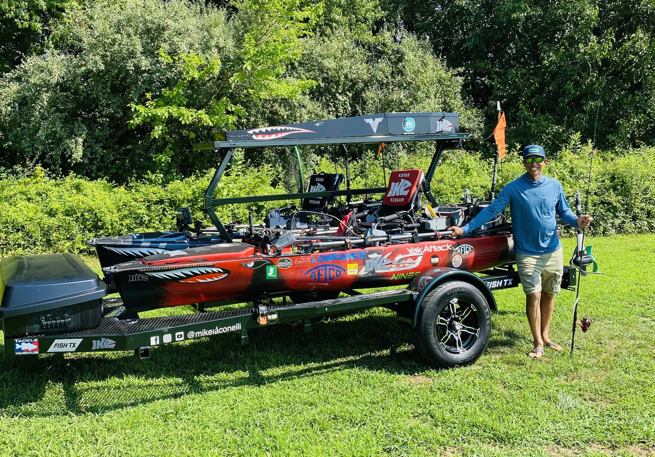 My trailer, made by Fish-Tx Kayak Trailers, makes ramp hopping faster, easier and more efficient. I drive my kayak onto the trailer just as I do with my bass boat. I can strap it down and be driving to another ramp in minutes.