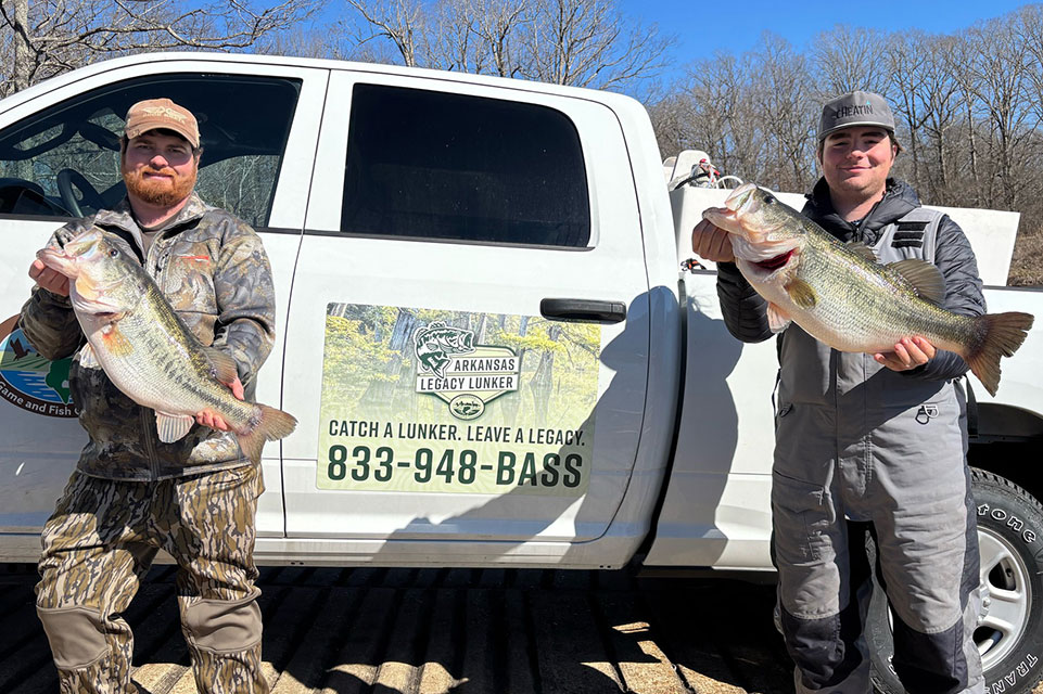 After a shakedown run in 2025, the Arkansas Game and Fish Commission began its program in earnest this year. Anglers bringing in a 10-pound plus bass between Jan. 1 and March 31 are asked to immediately call the Legacy Lunker hotline. Program coordinator Will Lancett will drive his mobile tank to pick up the fish then deliver it to biologists at the Joe Hogan State Fish Hatchery in Lonoke.