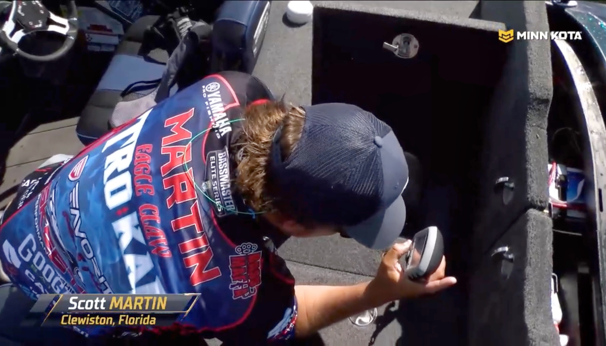 As Martin has made his way through a dozen cookie-cutter 2- and 1/2- pounders, he’s spent a considerable amount of time with his livewell lids open. To prevent the chance of a fish escaping while he’s deciphering which is the smallest, Martin has opened his back compartment kids as well to create a nice little cubby to cull from.