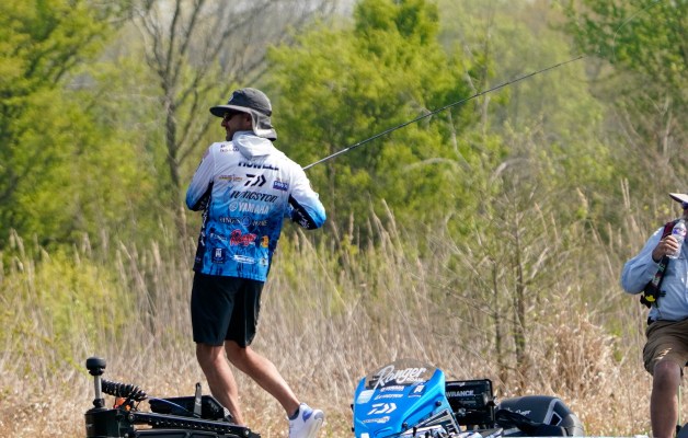 Team Toyota’s Matt Arey says he won’t allow the challenging tide-driven water level changes of the St. Johns River to dictate his day, but he did take time to look at tidal charts briefly on his Lowrance unit prior to Day 1 blast-off in Palatka.