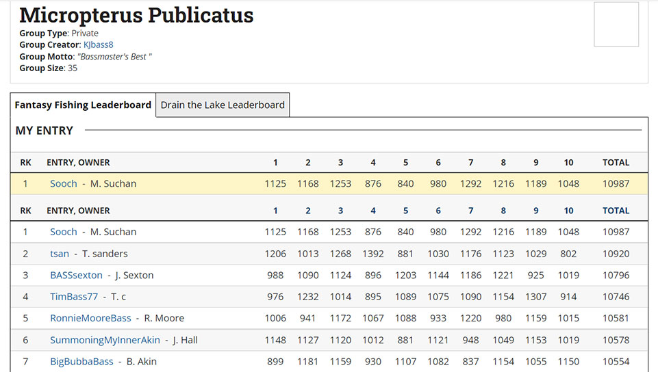 Point taken. With that insider knowledge, which was available to all players, I did pick Felix from Group C, and his victory and 50 bonus points helped make up 170 points on Sanders. I still had no inkling I’d have a shot to win the Bassmaster group, still being down close to 200.