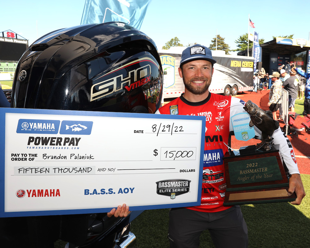Brandon Palaniuk’s words after receiving a $15,000 Power Pay bonus check from Yamaha for winning the Progressive Bassmaster Angler of the Year title were refreshingly genuine, and he got emotional when asked what his longtime relationship with Yamaha meant to him.