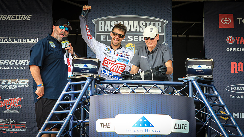 ORANGE, Texas — Chad Pipkens of DeWitt, Mich., broke with two of his historical patterns and sacked up a 14-pound, 7-ounce limit to lead Thursday’s opening round of the Folds of Honor Bassmaster Elite at Sabine River.