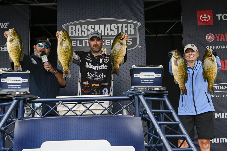 Smith’s record-setting smallmouth limit was the headliner on the first day of the Minn Kota Bassmaster Elite at the St. Lawrence River. But there were plenty of other accolades on a day when Lake Ontario’s rough water made fishing conditions less than ideal.