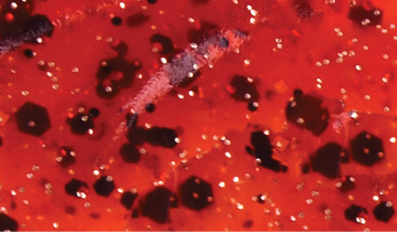 Red — One of Andrew Loberg’s favorites around thick cover, dirty water or where crawfish are common.