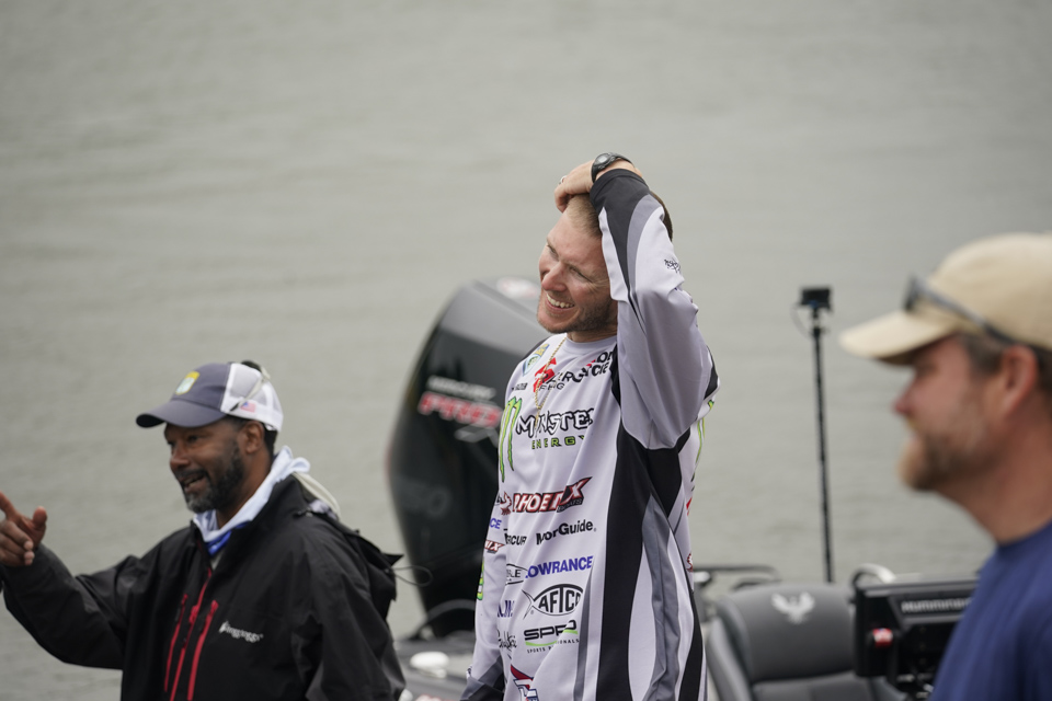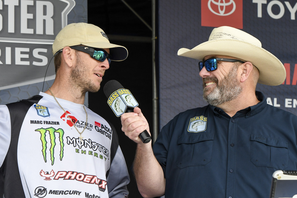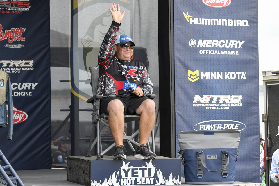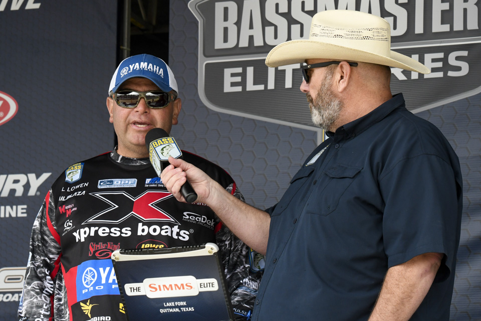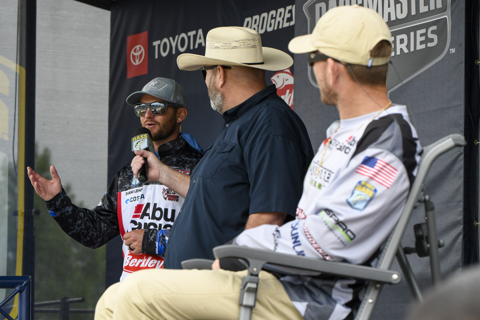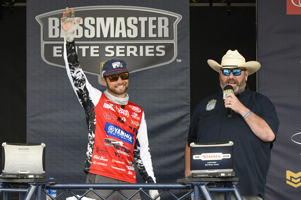 The top Elites cross the stage on the final day of the 2022 Simms Bassmaster Elite at Lake Fork!
