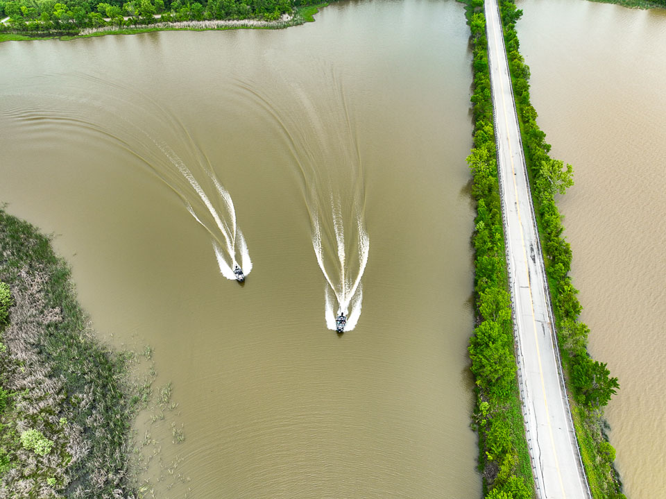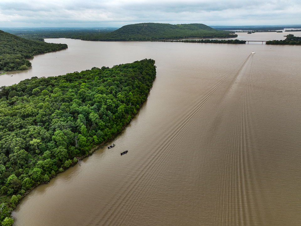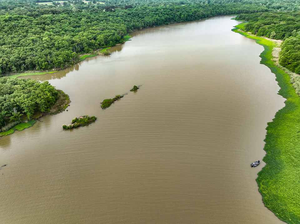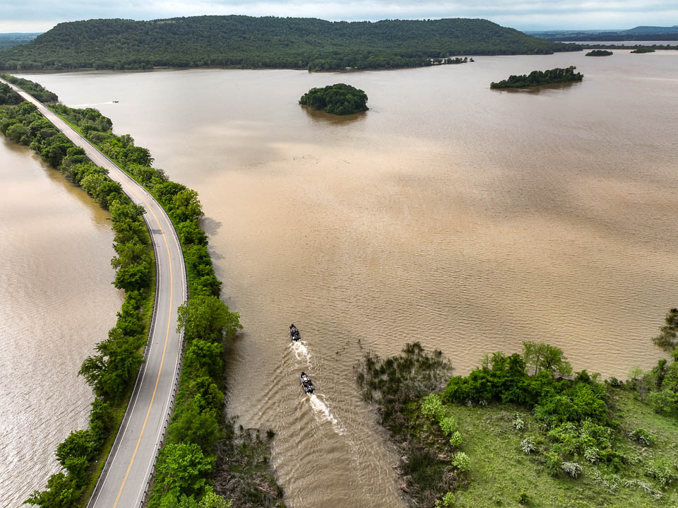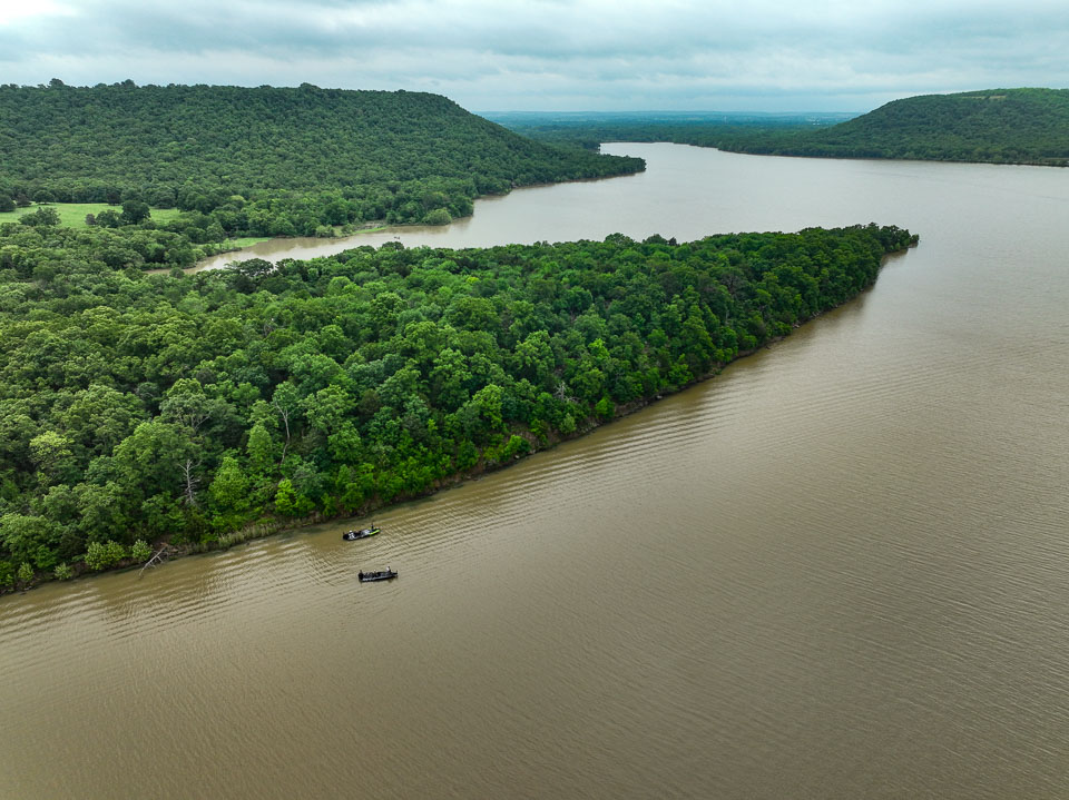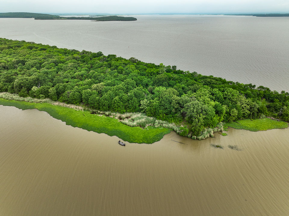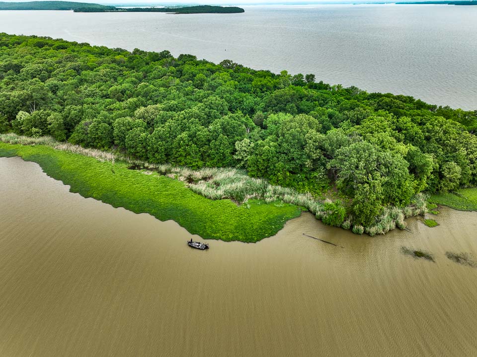 Morning flyover of habitat in play on Day 1 at Kerr Reservoir.