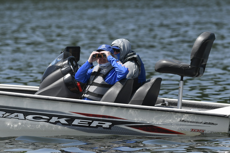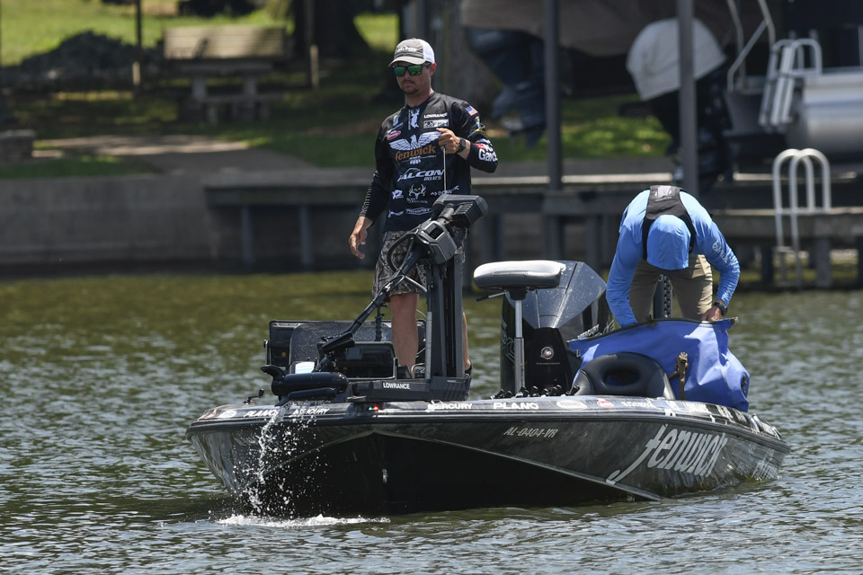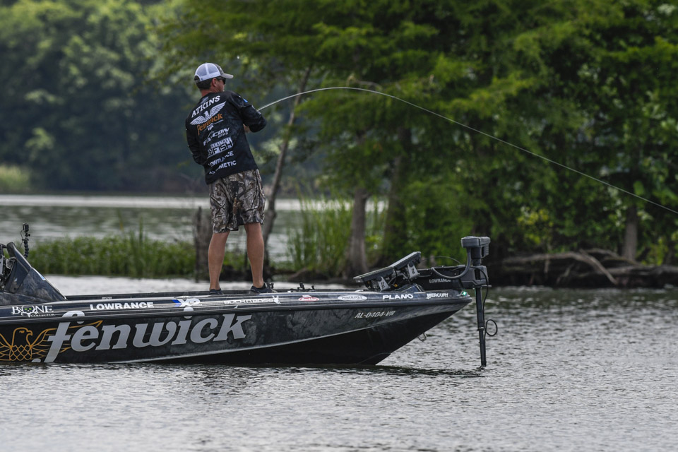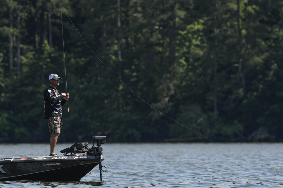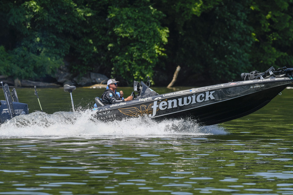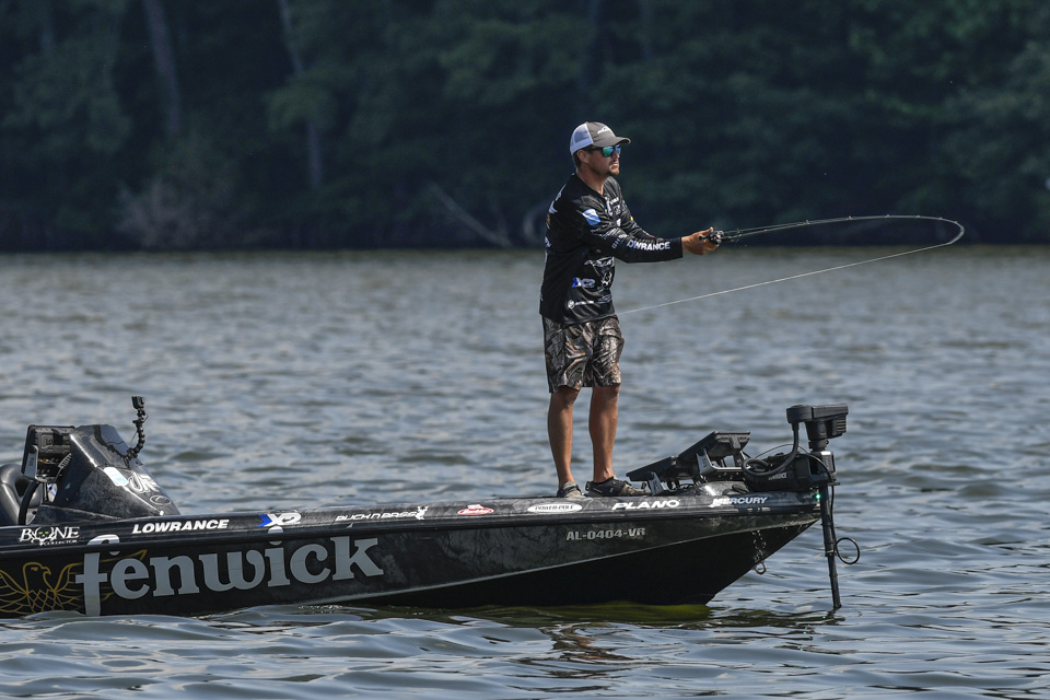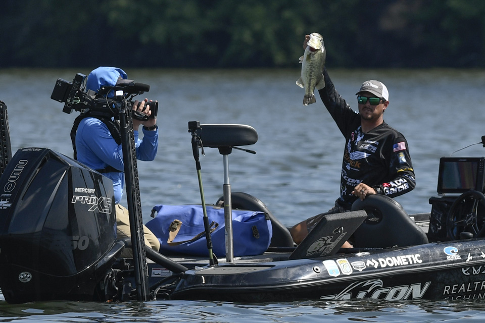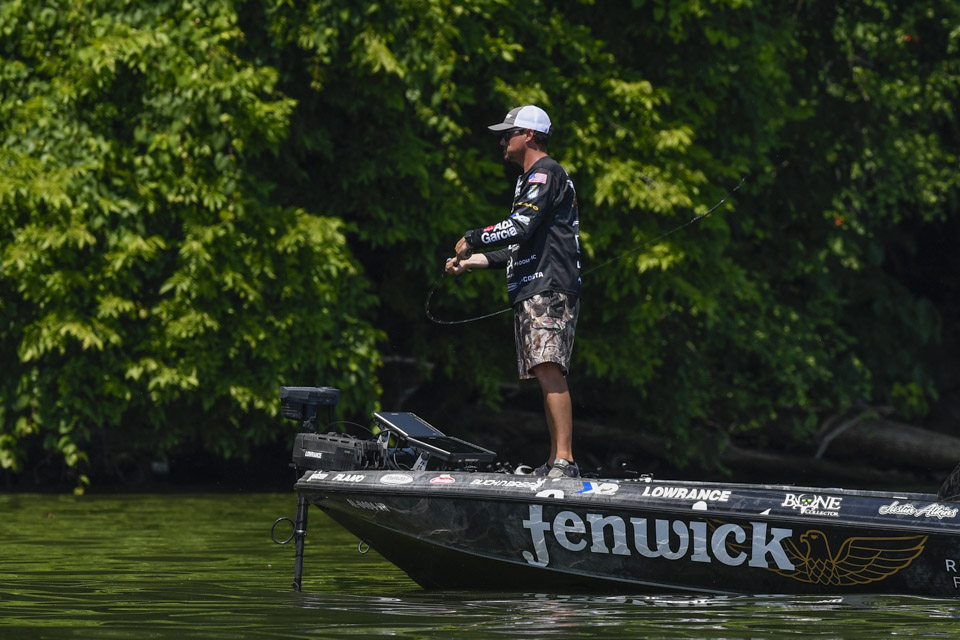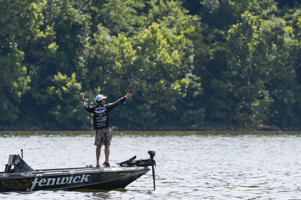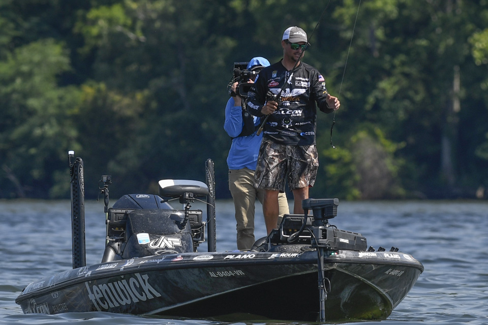 The Kentucky pro settled into an area and began rotating through a variety of baits including a crankbait and a magnum spoon.