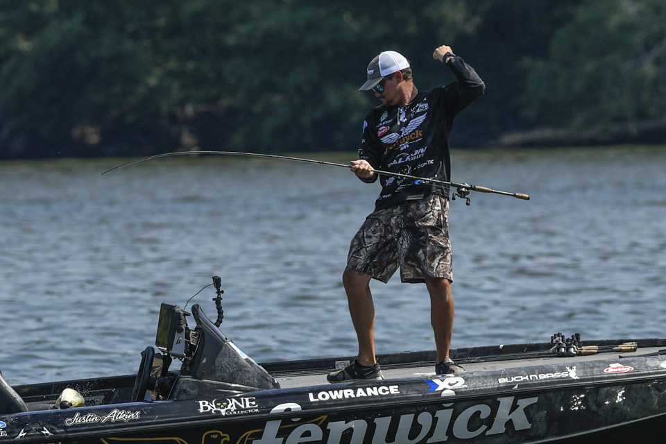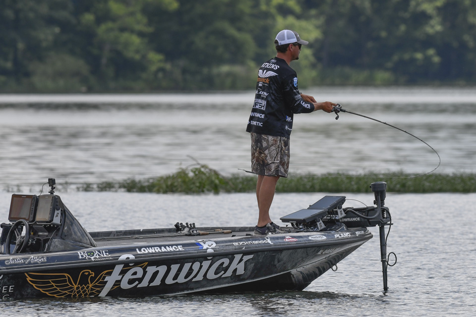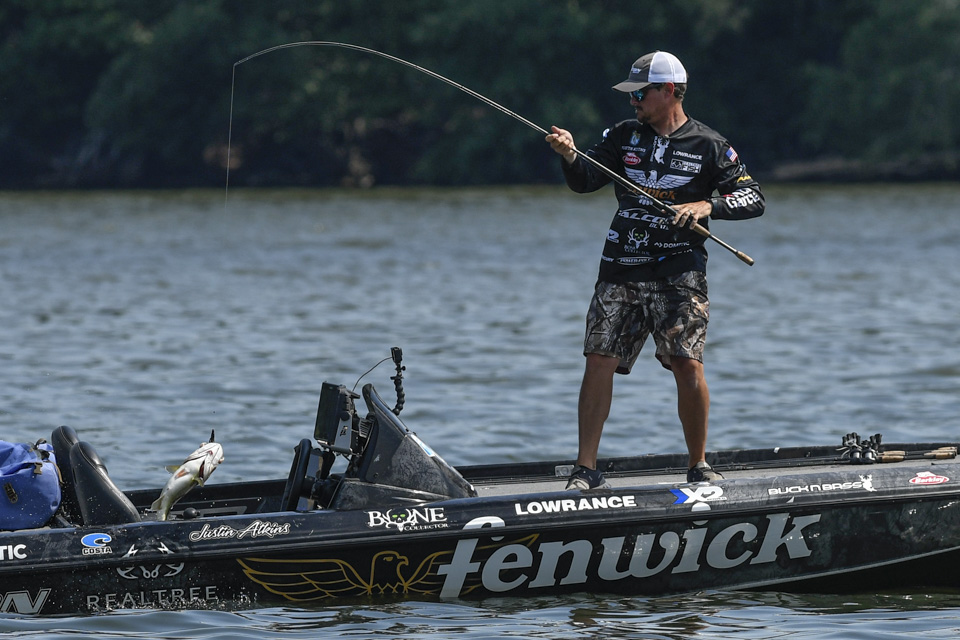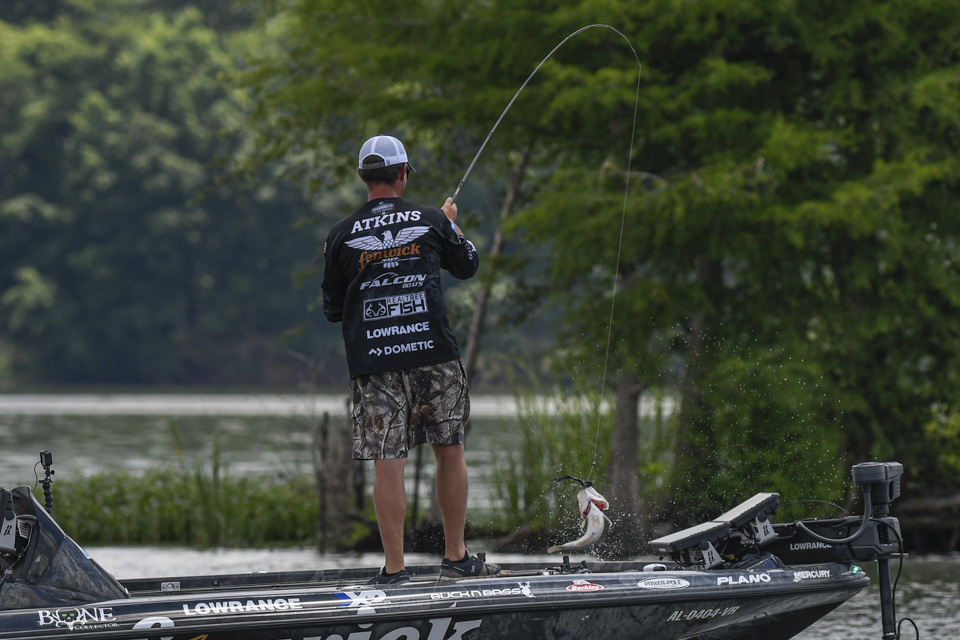 Justin Atkins began the 2022 Whataburger Bassmaster Elite Series at Pickwick Lake struggling in the Progressive Bassmaster Angler of the Year race, and he climbed the leaderboard to make Championship Sunday with a three-day total of 53-4.