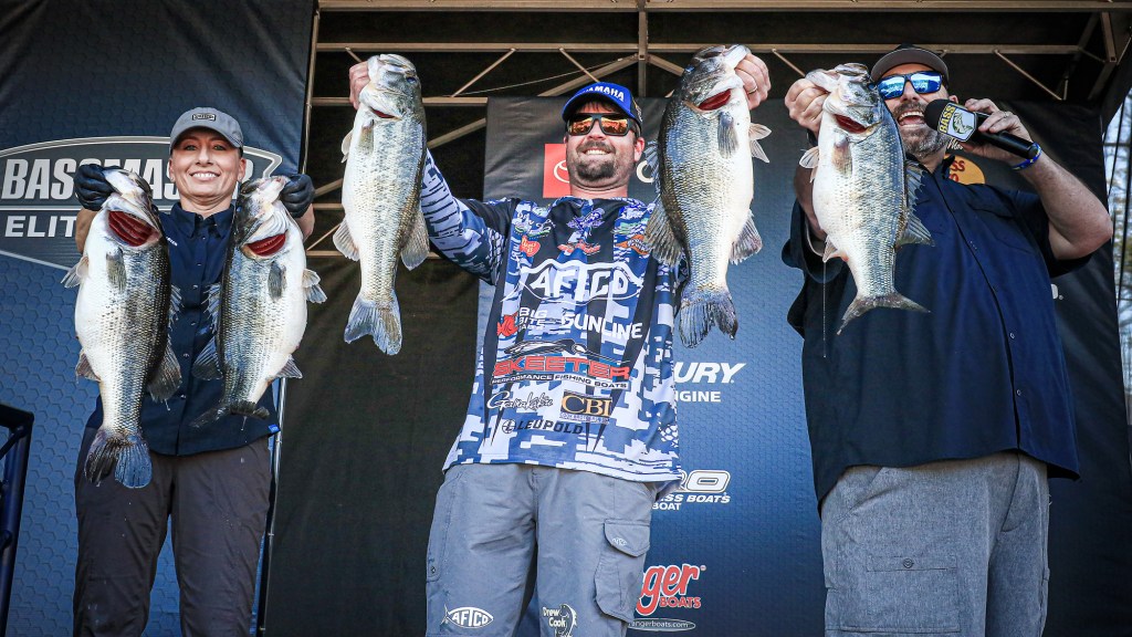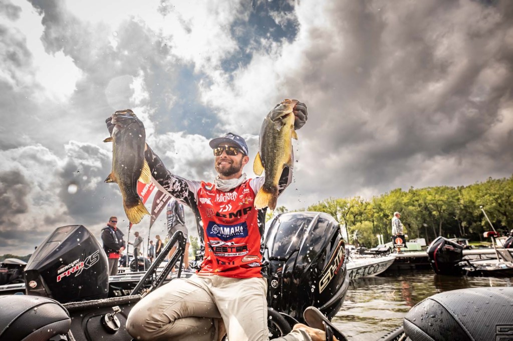 Guaranteed Rate Bassmaster Elite at Lake Oahe, Aug. 18-21. The huge smallmouth fishery wasn’t yielding the 20-plus pound bags reported a year earlier in pre-scouting, but there were big bass. Brandon Cobb was back at it, landing this 5-12 for daily and overall big bass bonuses. Cobb was eighth with 18-13, but he fell to 32nd after a Day 3 limit (5-7) less than his big ’un.