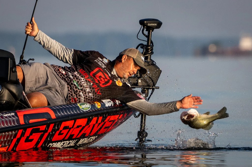 Georgia’s Marc Frazier was grateful for this 5-1 on Day 2, which helped him salvage 19 points and only fall three spots to 55th in points. It was twice the weight of the average bass on Day 2, when 88 Elites landed limits. Without that fish, Frazier would be standing in the 60s with more anglers to leapfrog in his bid to reach his third Classic.