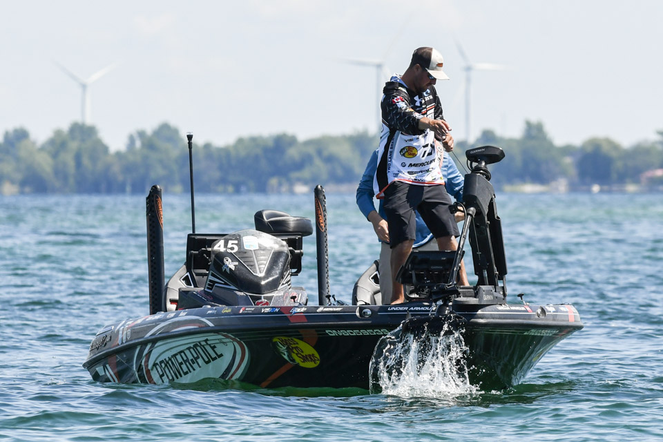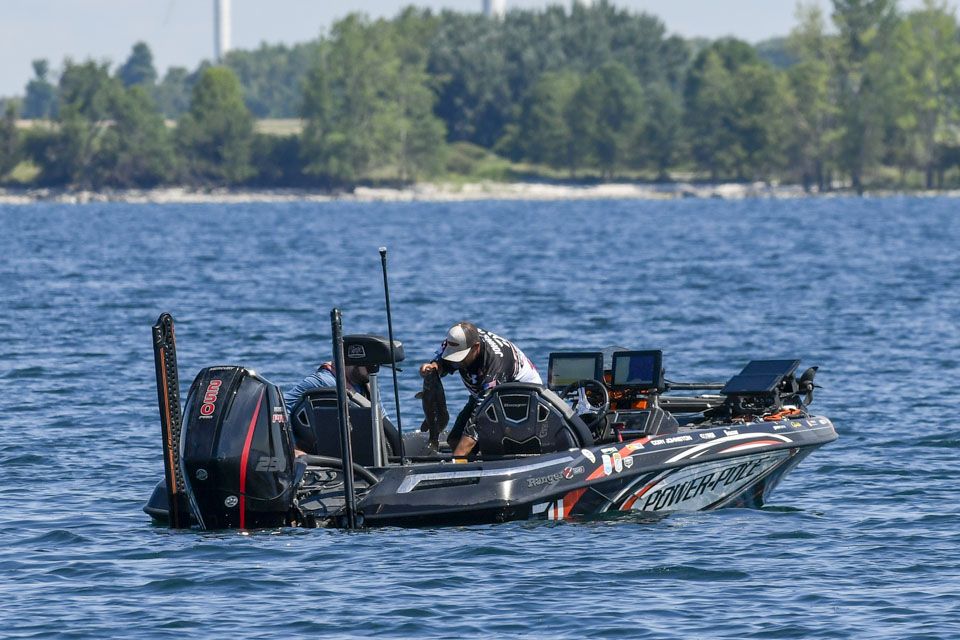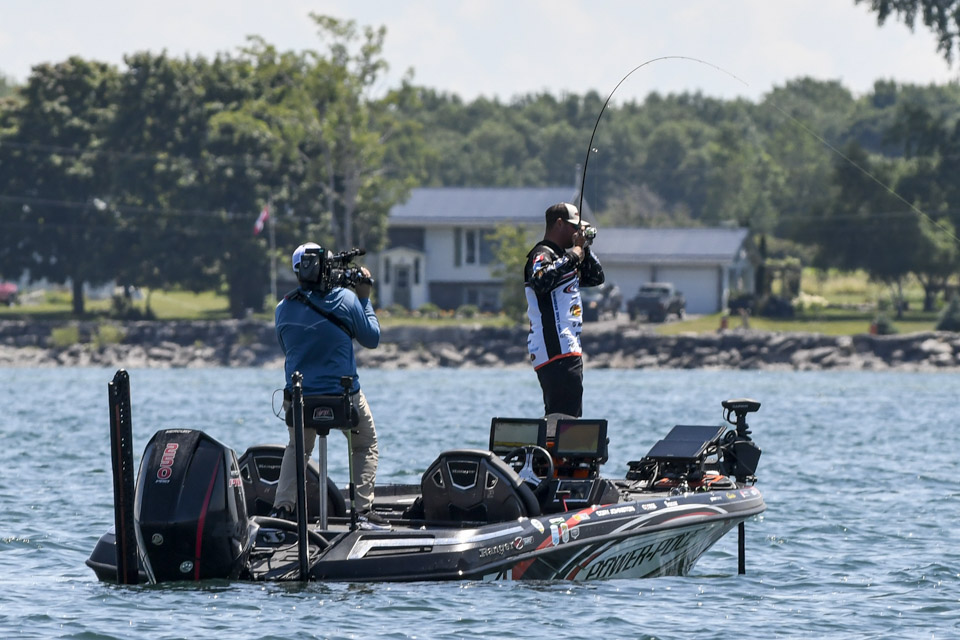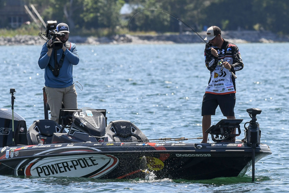 Canada’s Cory Johnston already was well on his way to repeating his heavy Day 1 limit of bass when we caught up with him.