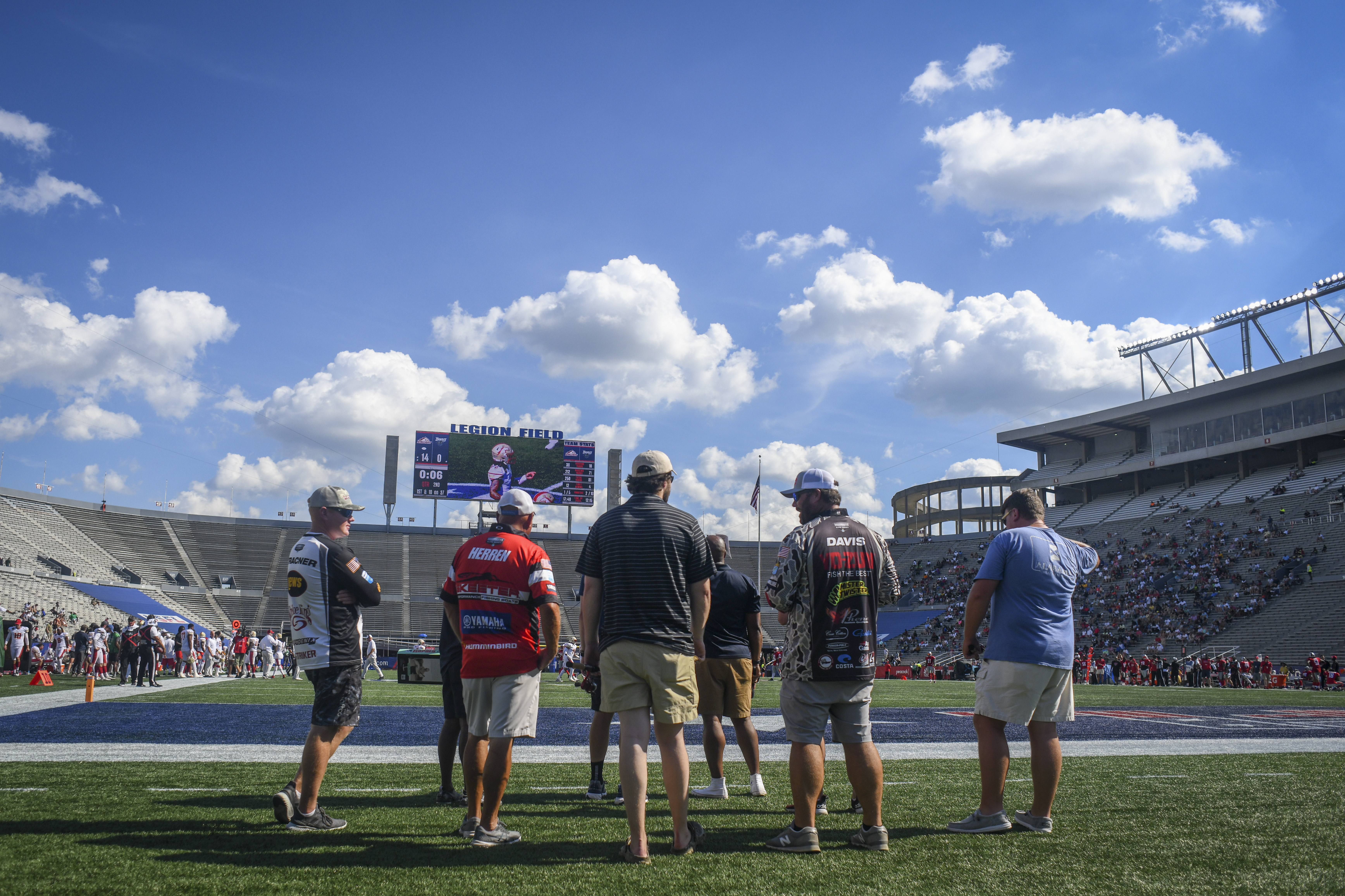 At the final regular-season USFL game in Birmingham, Alabama three Elite Series anglers made it a B.A.S.S.-themed day for the fans.
