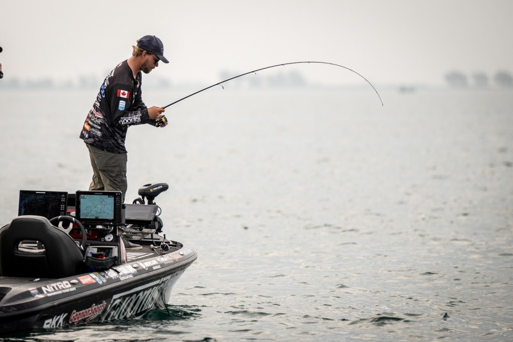 Head out on the water with Cooper Gallant on the second day of the 2023 AFTCO Bassmaster Elite at Lake St. Clair!