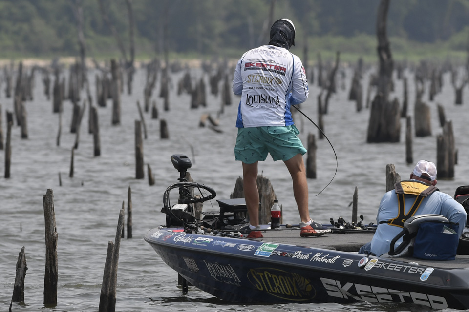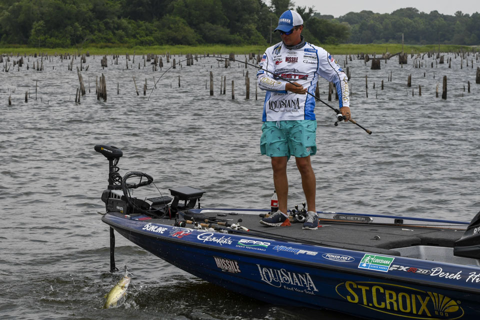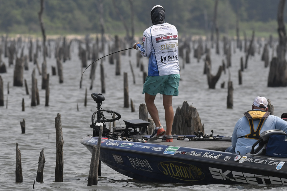Head out with Derek Hudnall as he battles a tough afternoon on Day 3 of the 2022 Simms Bassmaster Elite at Lake Fork!
