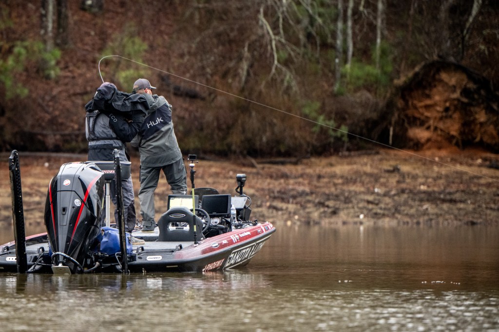 Brock Mosley and Chris Zaldain chase Championship Sunday momentum and fish through the rain at the 2026 Lippert Bassmaster Elite at Lake Martin.