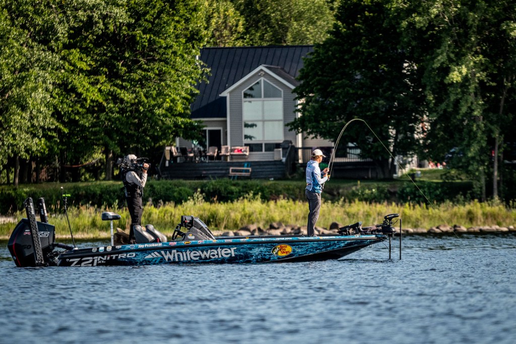 Go on the water with Jay Przekurat and Drew Benton on the third day of the 2022 Guaranteed Rate Bassmaster Elite at St. Lawrence River!