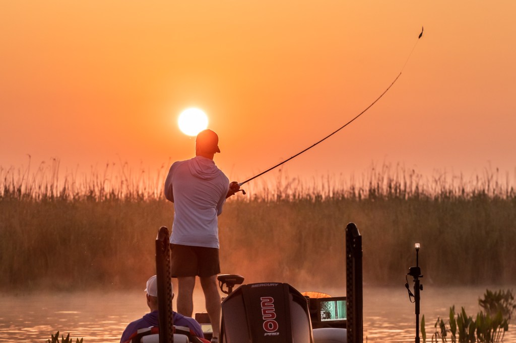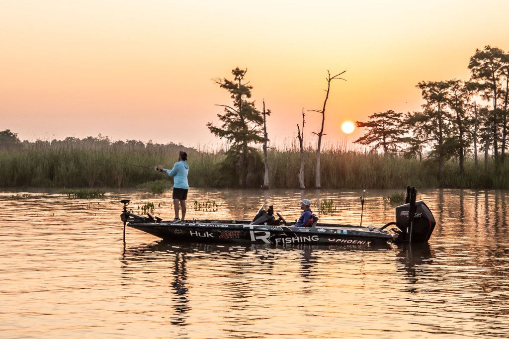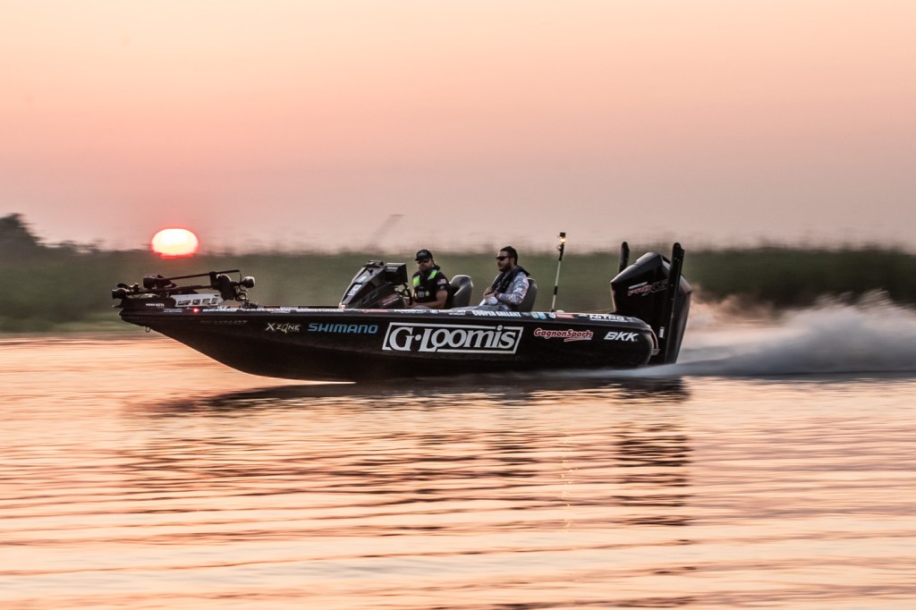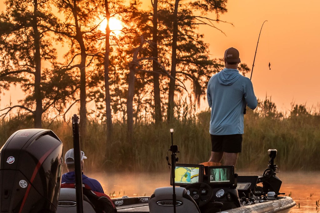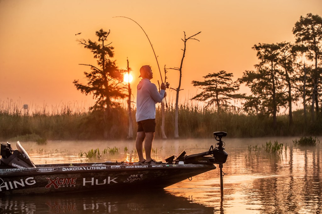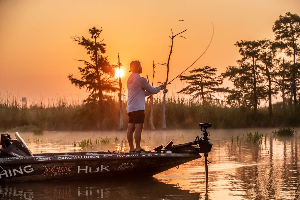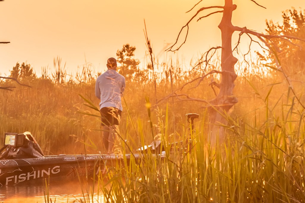 See Tyler Rivet get to work as the sun rises Day 1 of 2023 Folds of Honor Bassmaster Elite at Sabine River!