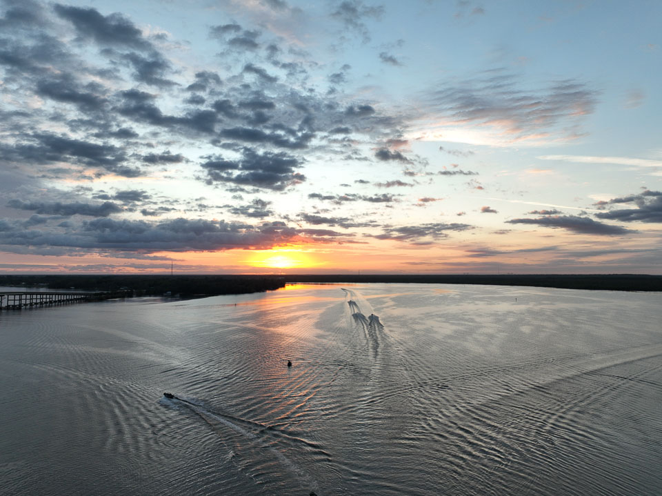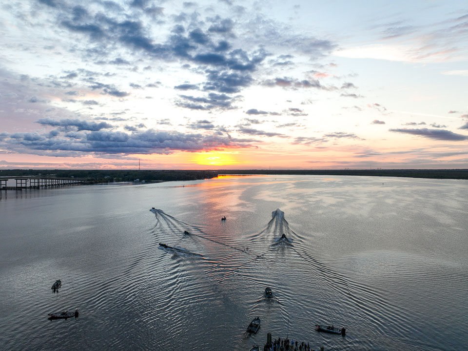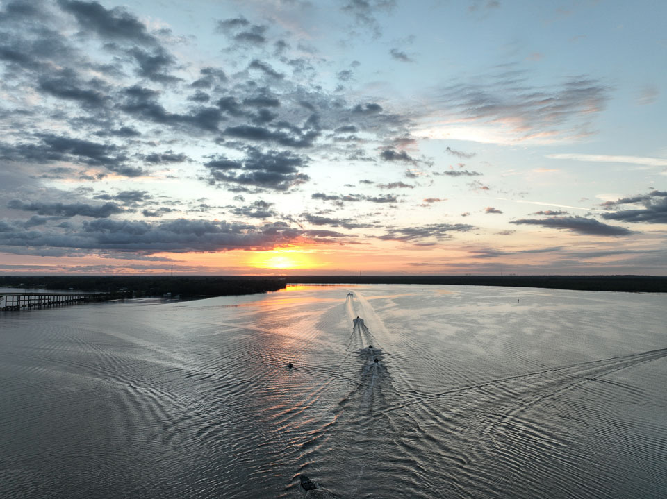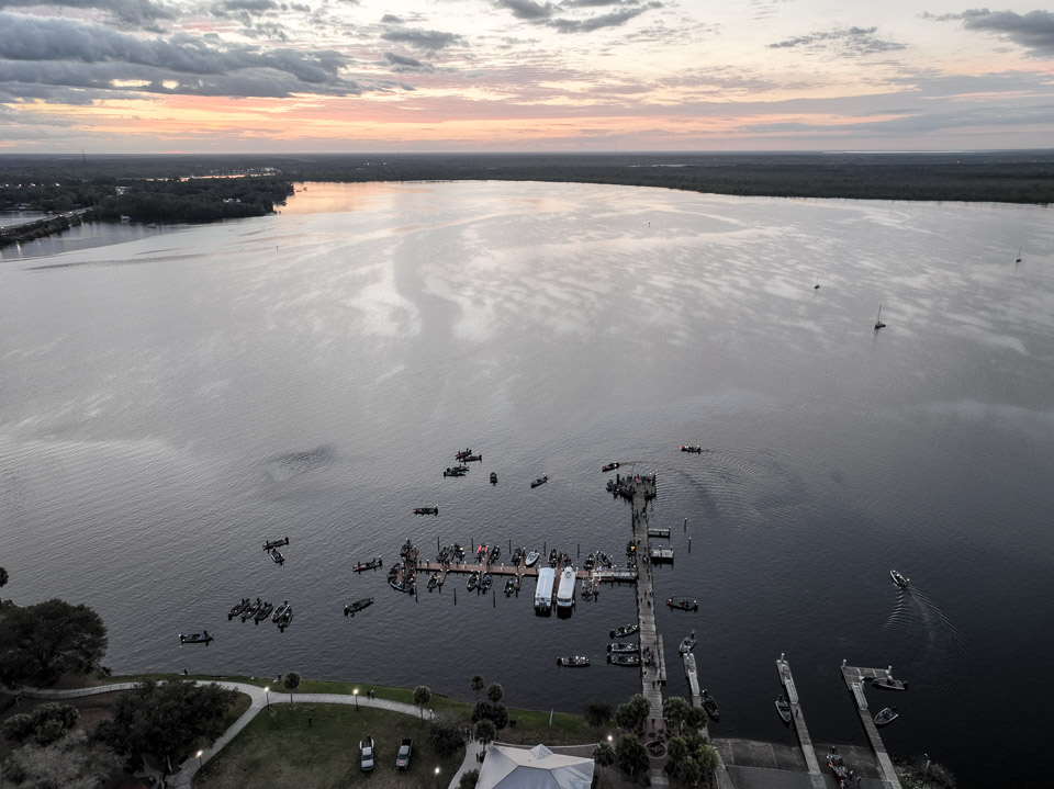 Take a flyover of the takeoff on a sunny Florida morning over the St. Johns River.