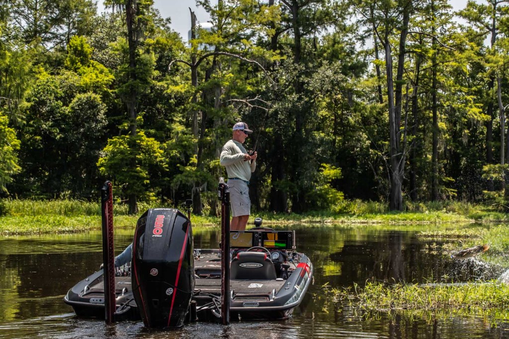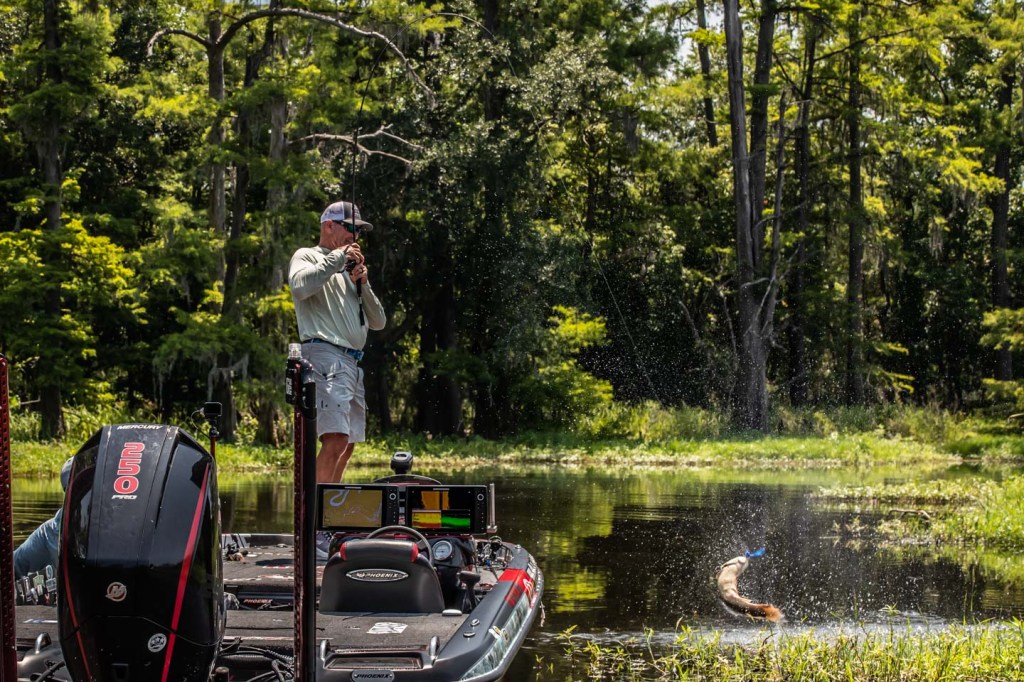 Head out with Gerald Swindle and David Mullins as they wrap up Day 1 of the 2023 Folds of Honor Bassmaster Elite at Sabine River!