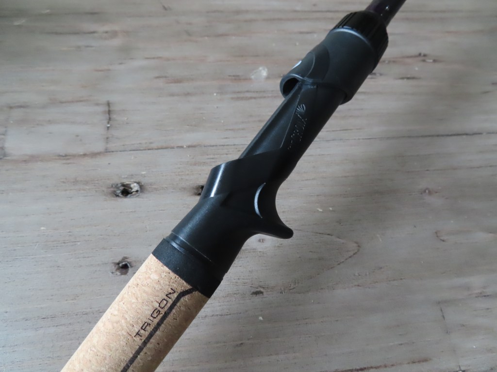 Everything looks the same as my favorite Mojo Bass rods except the handle, which is a game changer. St. Croix partnered with a renowned industrial designer to validate the ergonomics that make TRIGON unique. The noticeable result, for me, is greater hand-to-blank alignment. I felt and notice the improved lure control when casting at targets. The flattened top curve felt more comfortable in my casting hand, adding pleasing ergonomics.