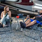 When we first set out on our full-time travel journey, we left with a few collapsible camp chairs that we had accumulated over the years. Knowing we would eventually upgrade our outdoor equipment, we started noticing other campers’ chairs and tables. It was the GCI Outdoor Zero Gravity Lounger that really caught our attention. Its sleek design is eye-catching, and once we sat in one, we were sold. We love the multiple positions from chair to lounger and how easy it is to work. Our four-year-old son uses them with ease.