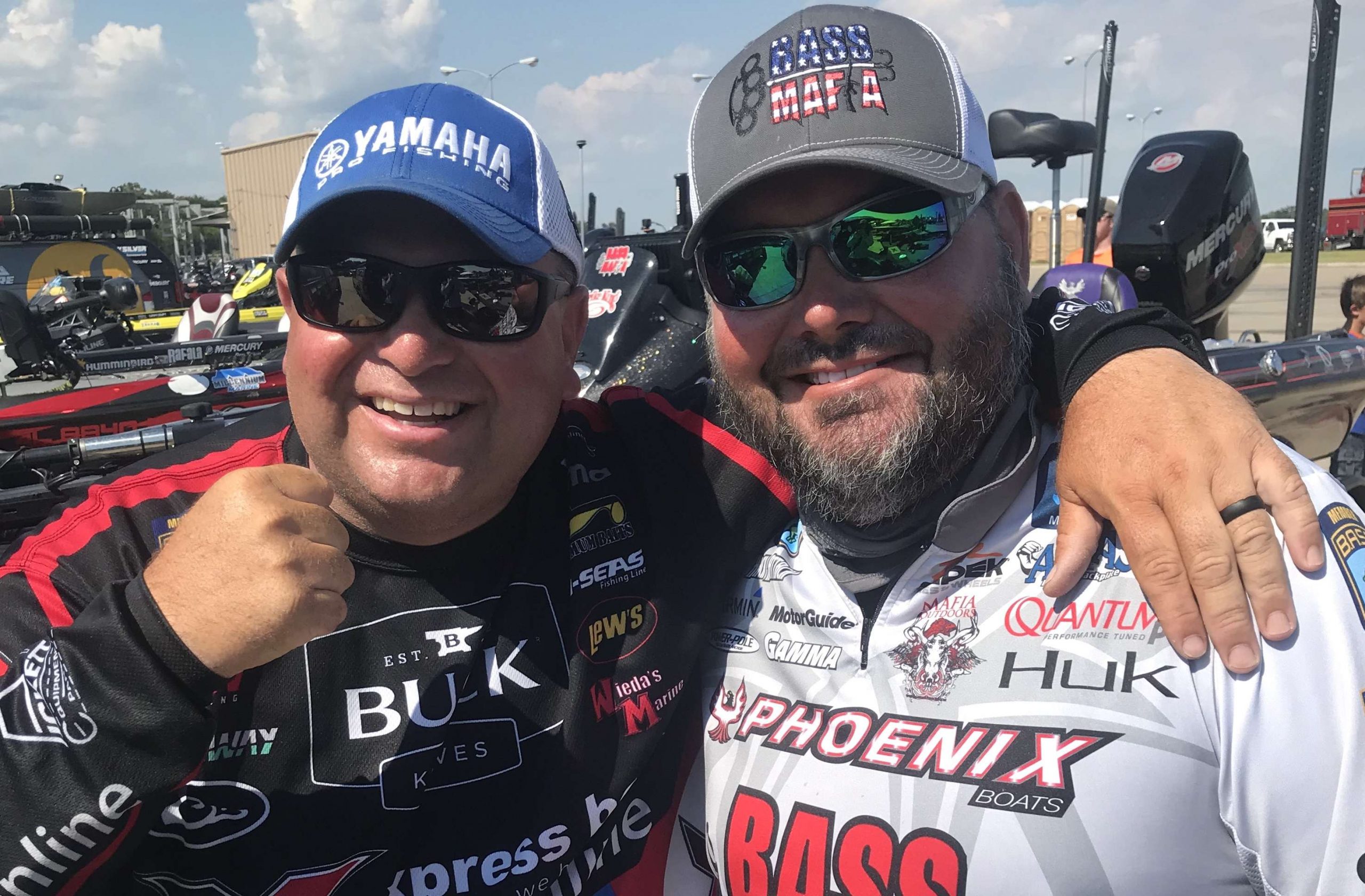 Today on the water I witnessed what was somewhere between a discussion and a disagreement between Bill Lowen (left above) and Greg Hackney (right). While this may occur often in the Elite Series, it happened with a Bassmaster LIVE camera capturing it all (you can see the clip below). In case you were wondering how this would play out, see the picture sent to us by J.D. Blackburn above. Despite their discussion or disagreement about who should fish what, these two professionals at the end of the day had a little fun with it and will see each other on the water remaining friends (but also competitors).