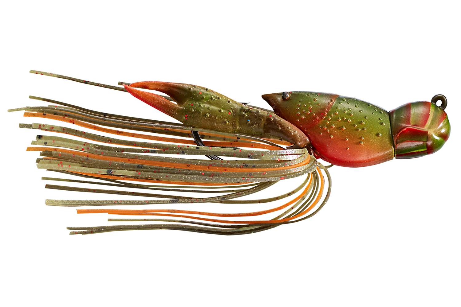 It’s a craw bait that looks amazingly close to the real thing. Known for ultra-authentic designs, LiveTarget gave this craw a hollow head and midsection with a set of hollow pinchers that create a snag-resistant profile. An extra strong hook is anchored by the weighted abdomen sculpted to resemble a craw’s tucked-under tail. With the hook eye situated atop this abdomen section, retrieves pull the Hollow Body Craw in a natural reverse orientation. The bait’s pinchers and silicone skirt flare upward to mimic a craw on high alert.