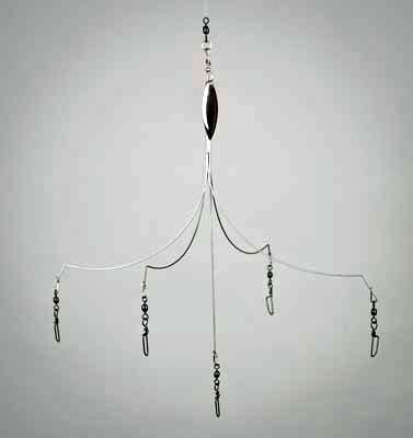 It’s an umbrella rig with five, 11-inch arms and a spinner on the main shaft.