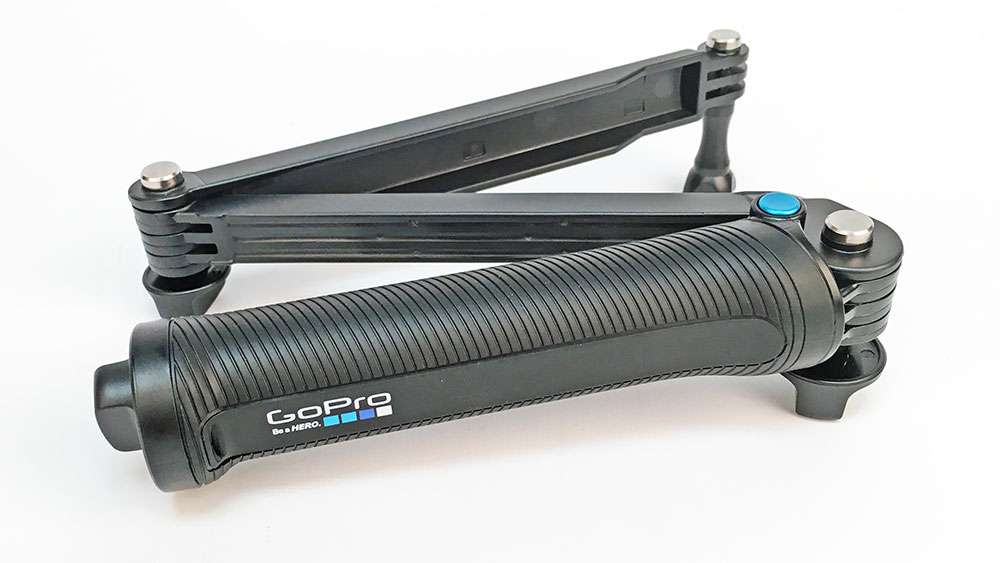 The 3-Way mount can be used as a hand-held camera grip, extension arm or as a tripod. The folding arm is ideal for POV or follow-cam footage, and it works well as a selfie stick. When detached from the arm, the handle doubles as a camera grip. Stored inside the grip is a lightweight, mini tripod that offers another perspective.