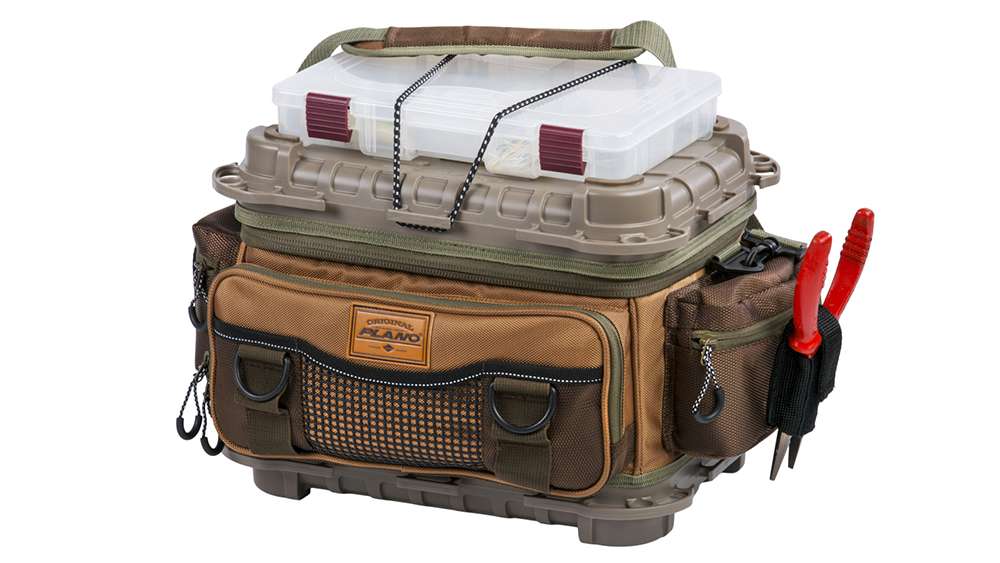 With pockets on three sides and a large mesh slip pocket in the rear, sizes 3700, 3600 and 3500 boast 360-degree storage with a low-profile that makes it space-efficient and convenient to carry. The larger two sizes include six matching tackle trays (five inside/one on the roof), while the 3500 includes five (four/one). Handy tie-down points allow you to secure the bag to kayaks, ATVs or boat decks during bouncy times.