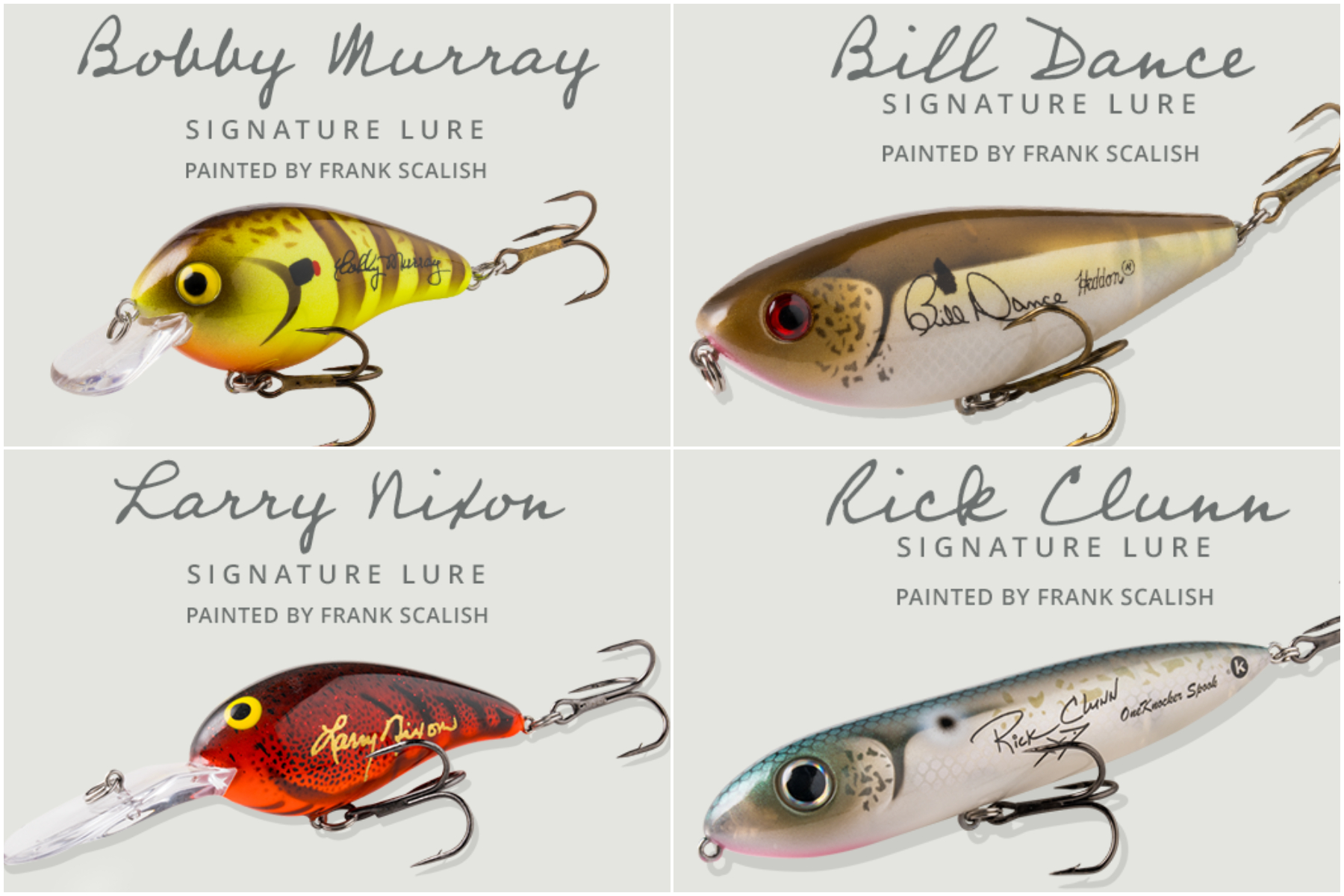 To commemorate the 25th Anniversary of the Bass Fishing Hall of Fame, PRADCO partnered with lure-painting legend Frank Scalish to create five exclusive colors on legacy lures from Heddon, Norman, and Cotton Cordell. Each bait bears the printed signature of a Hall of Fame icon. Only 300 of each color exist, and all proceeds benefit the Hall’s mission of preserving, promoting, and conserving bass fishing.