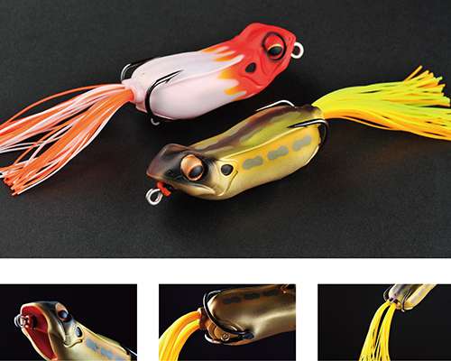Megabass spent two years developing a topwater frog that not only had a solid, consistent splashing sound, but also had a mild pop. These two characteristics are said to make the Pony Gabot one of the most realistic topwater frogs on the market, and also make it easier for bass to locate under thick matted grass. Also, the “Catamaran Mouth” allows for pinpoint turns and walking action, transmits sound underwater and creates lifelike frog swimming sounds.