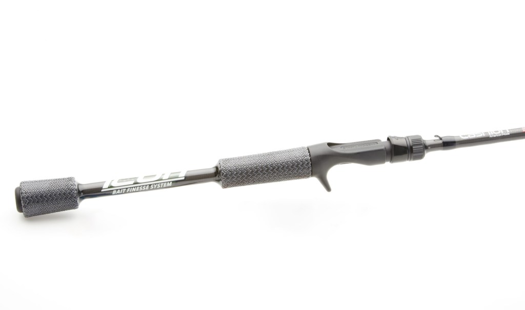The 6′ 10″ medium light, fast version of the Bait Finesse System series features Cashion’s CR4r raw finish blank, ceramic guides and exposed rod seat for direct blank contact. $129.95. Cashionrods.com