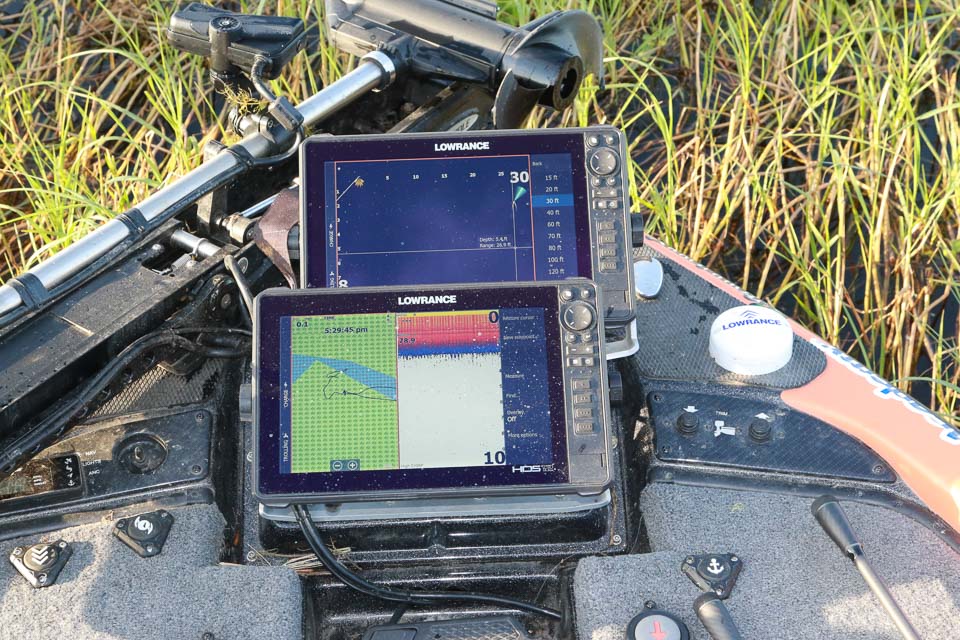 A pair of Lowrance HDS 12 units guide Lane’s movement.