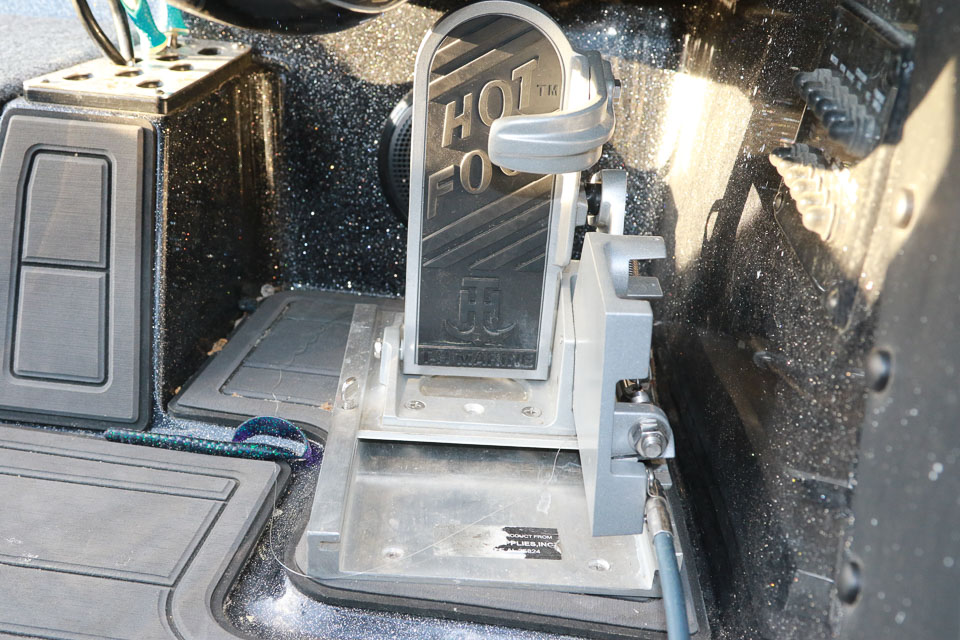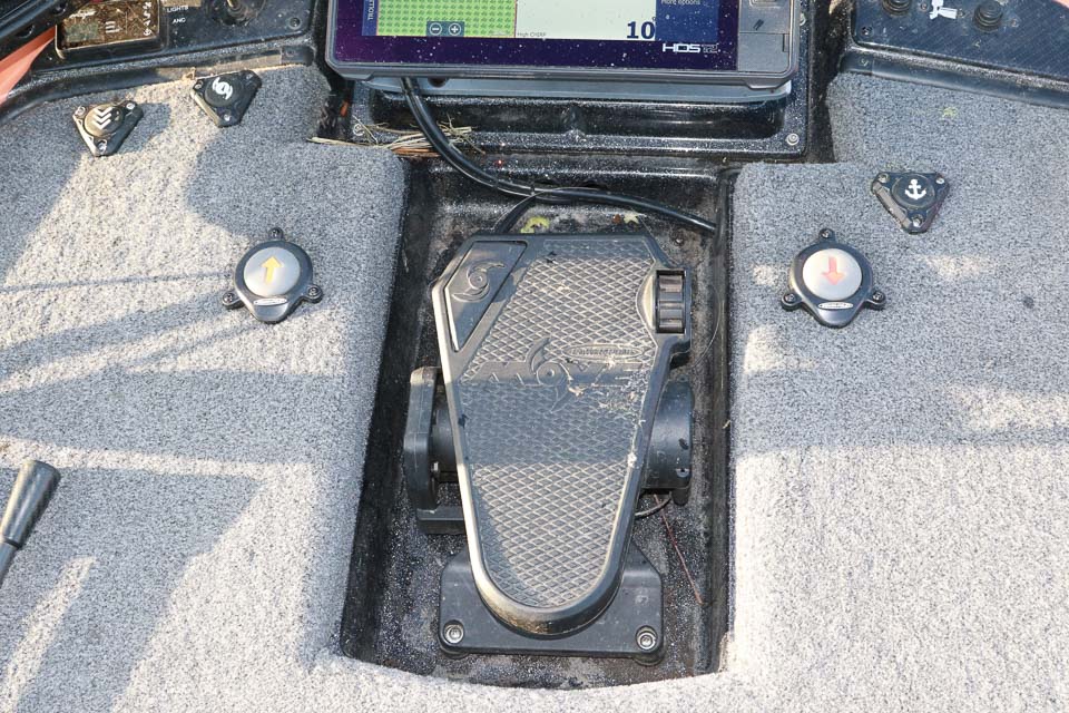 The Power-Pole up and down buttons flank the trolling motor pedal.